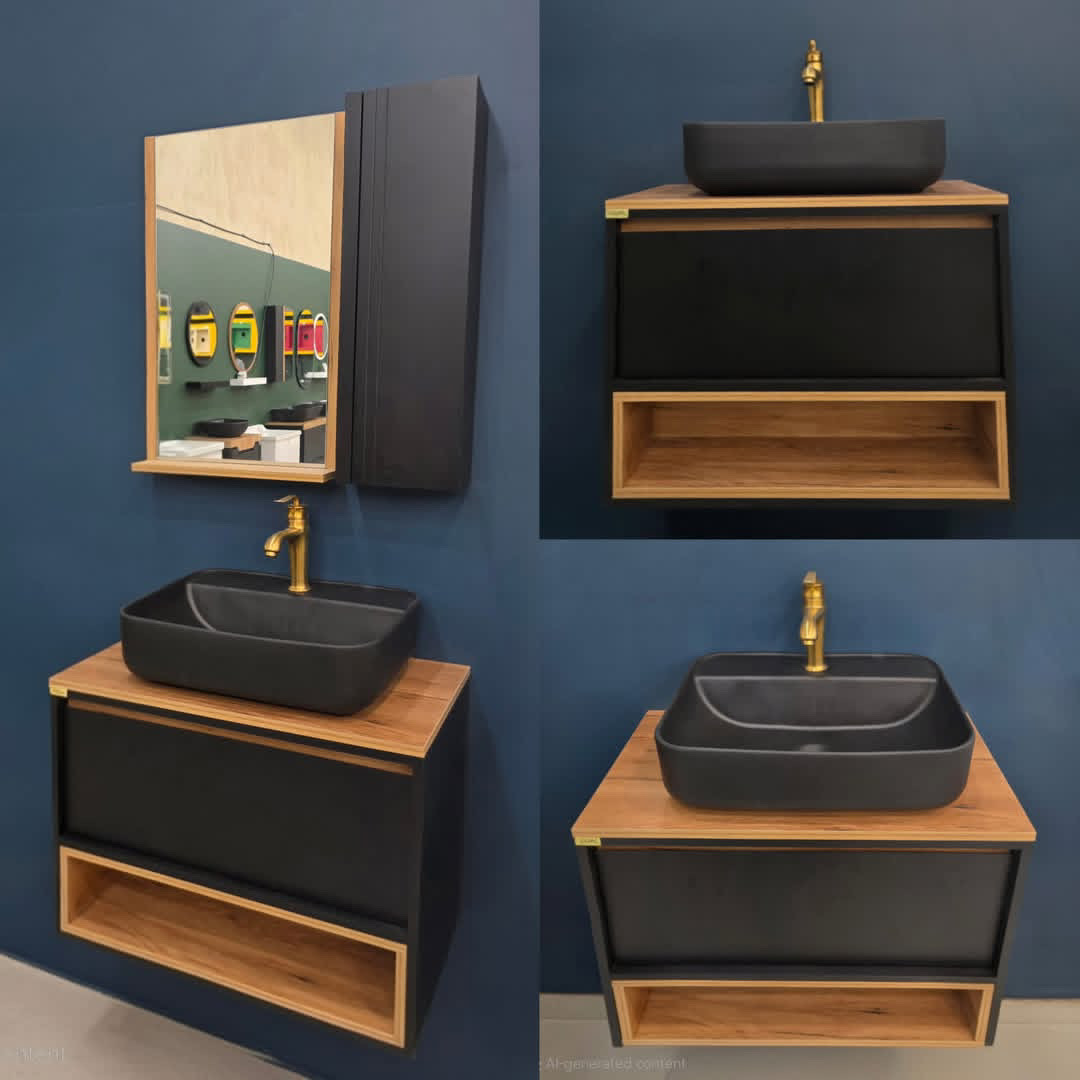 روشویی دنکو80/40 سفید چوب و مشکی چوب